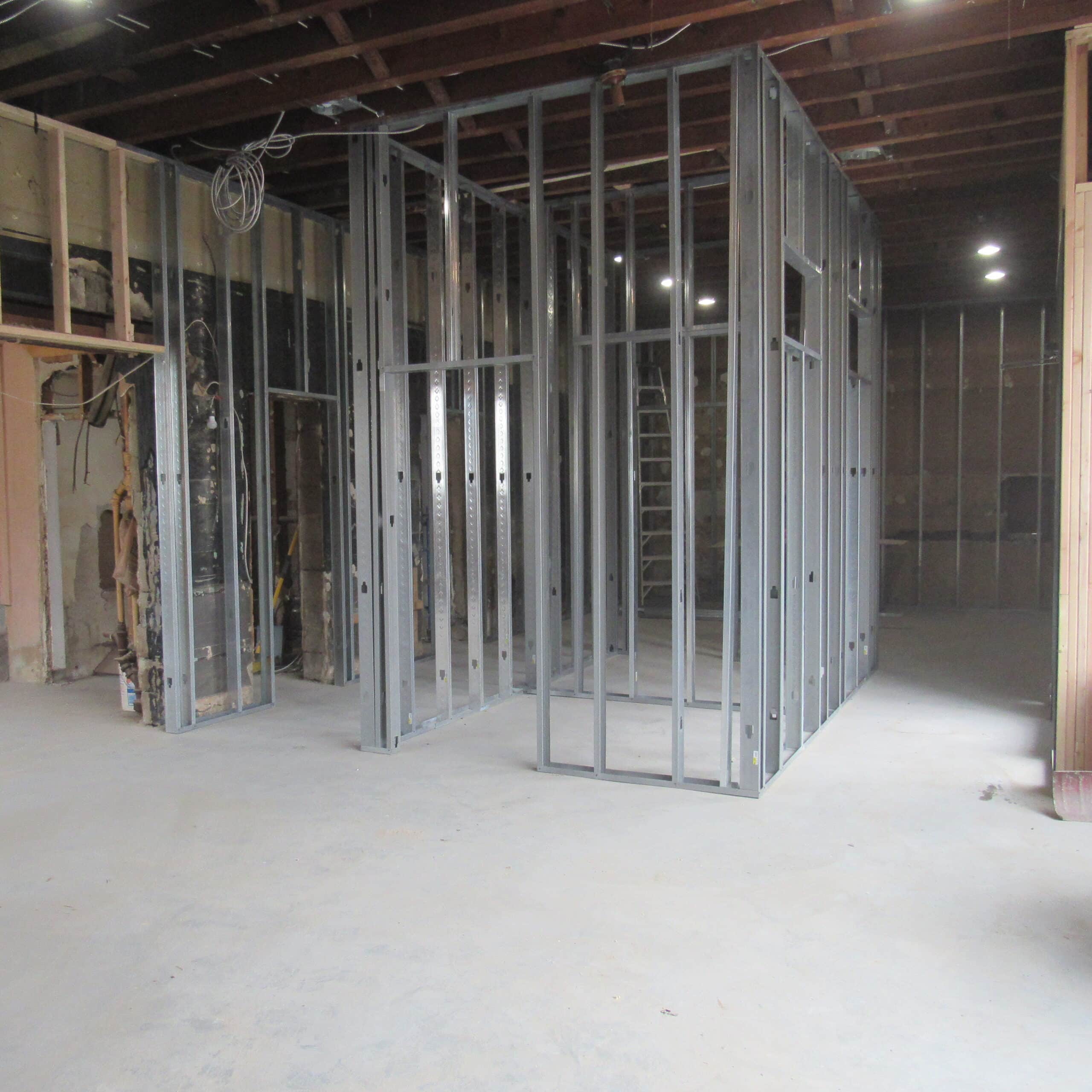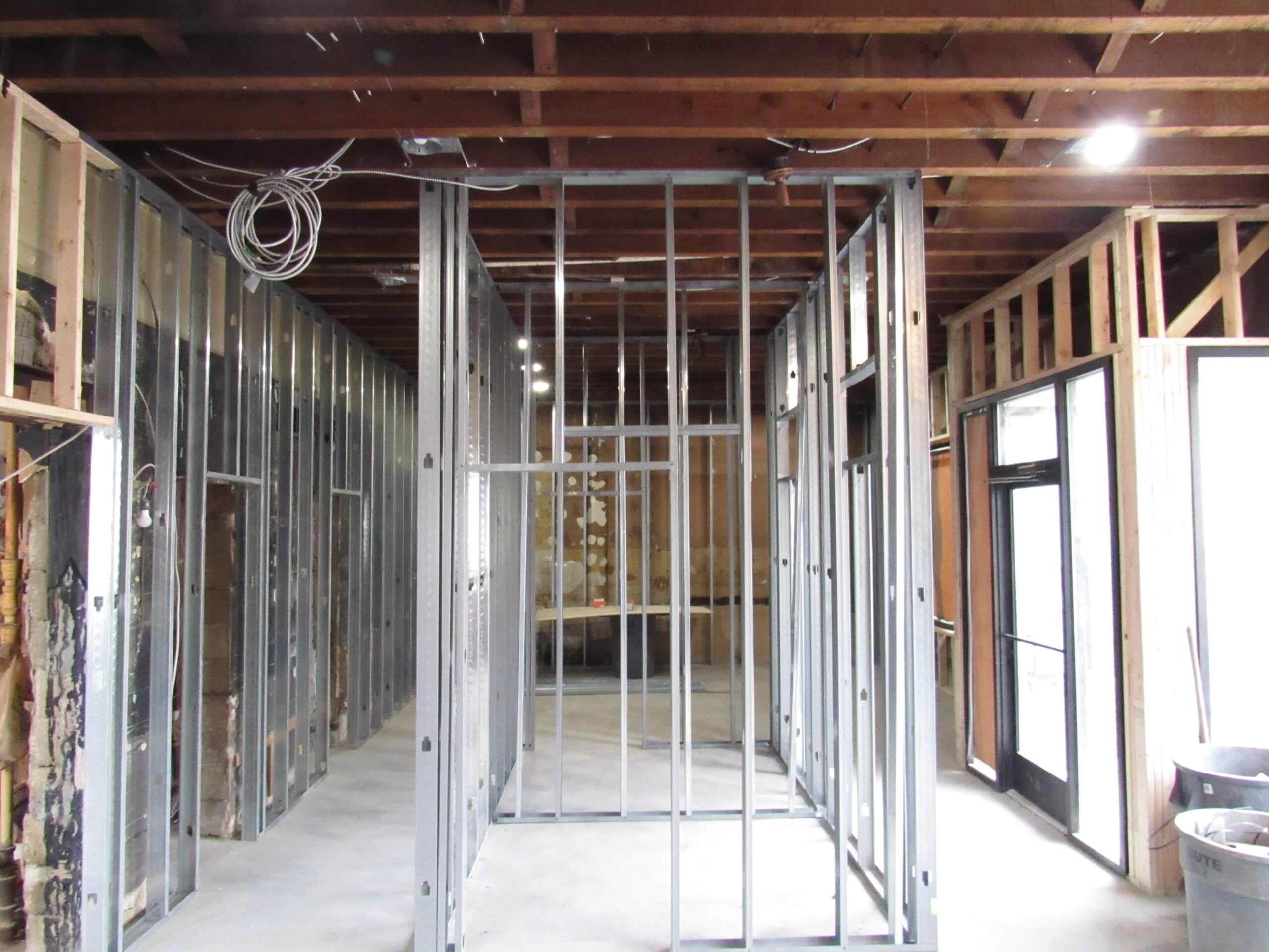 What a difference a month makes! The crews have been busy replacing that seedy storefront with a new beautiful bronze glass system. We’ve demolished everything but the outer walls and studs, replaced all doors, added framing and are on to lighting and electrical. What’s better is we’ve found a fellow crossroads church member to lead our construction efforts in Steezo Construction. We are proud and exited to restore this building and add value to our new neighborhood. Check out the photos/progress below and stay tuned for more updates !